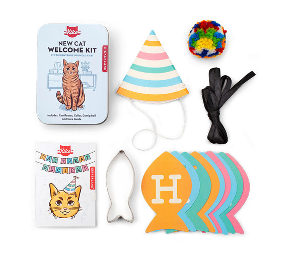 Let the cat out of the bag — it’s their birthday! This kit comes with a banner, party hat, yarn ball, fish-shaped treat mold, and a recipe booklet for a celebration full of cattitude.