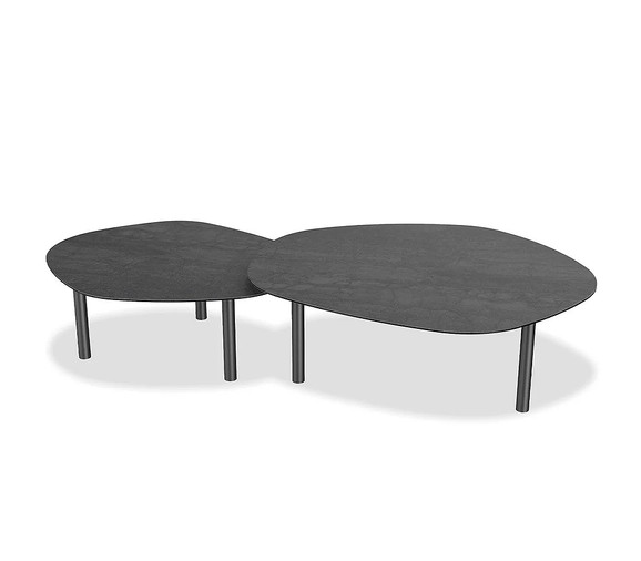 The Cairn occasional tables - a versatile set that seamlessly nest together or stand alone. Crafted with Italian ceramic, these tables are not only stylish but also incredibly durable. Available in two unique shades of grey. See more of the Cairn collection.