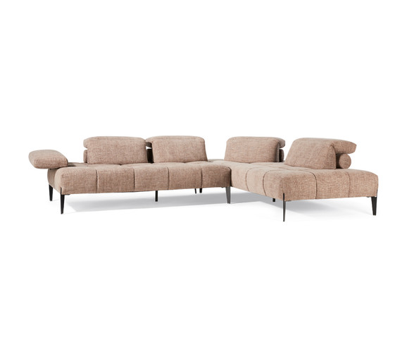 The airy Skyline sectional is an adjustable dream, combining modern style with customizable comfort. Distinguished by its tight seat cushions and contemporary quilted design, it’s elevated on slim matte black metal legs for a light, sophisticated look. A continuous headrest with an integrated bolster offers support, while manually adjustable backrests and armrests extend the seat depth and widen the armrests cozy lounging. The armrests can be lifted to any position, making Skyline as versatile as it is stylish. See more of the Calia Italia Collection.