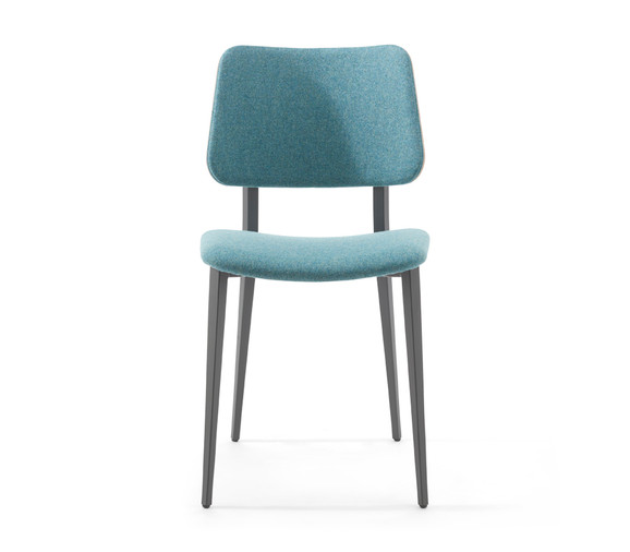 - Metal structure. Upholstered seat and back. Seat back in wood veneer.